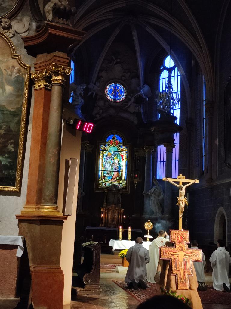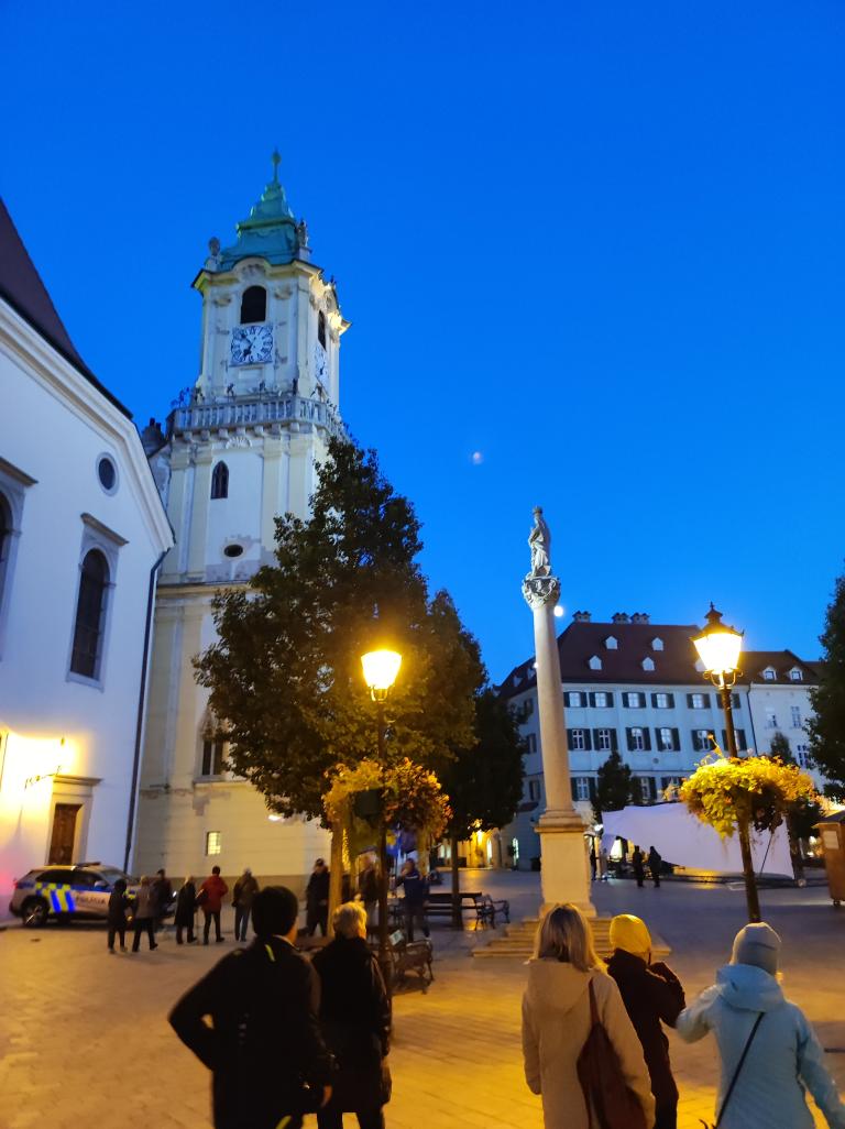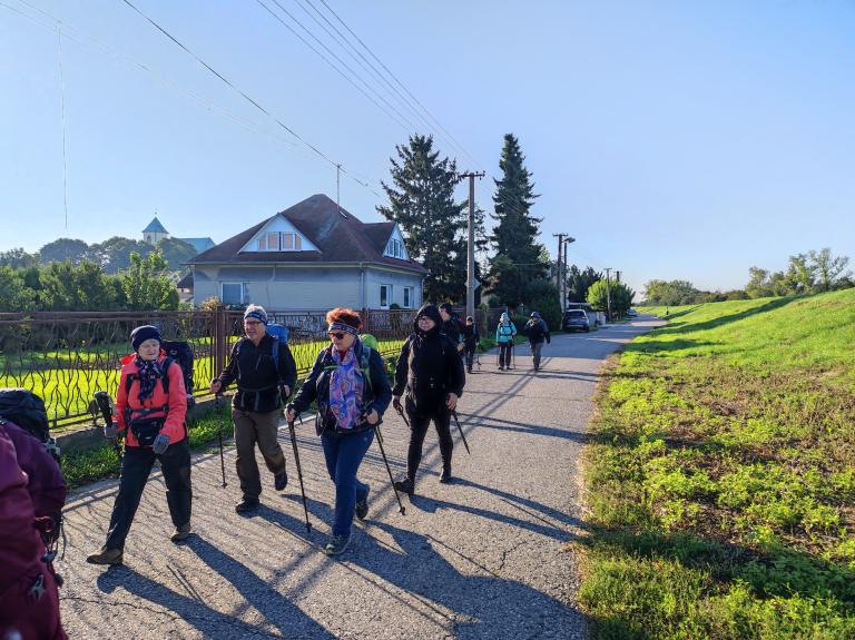 Kicsit csípős hideg volt, de nagyon szépen sütött a nap. Földúton haladtak az autópálya közelében. Végül közelítve Pozsonyhoz, az útjuk a Duna mentén folytatódott, szép őszi avaron. Több mint 20 km megtétele után megérkeztek Pozsonyba. A szállás elfoglalása után a Ferences templomban szép szentmisén vettek részt és szentségimádáson, végül szentségi áldásban részesültek.