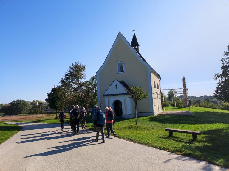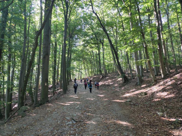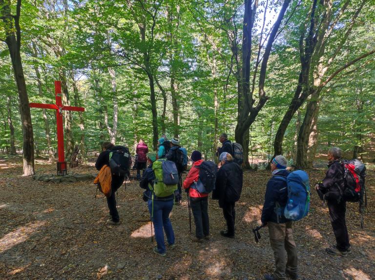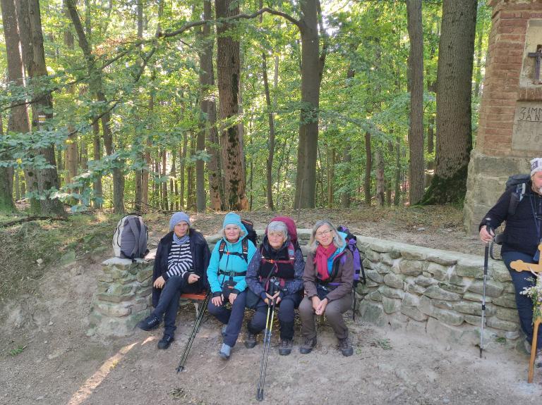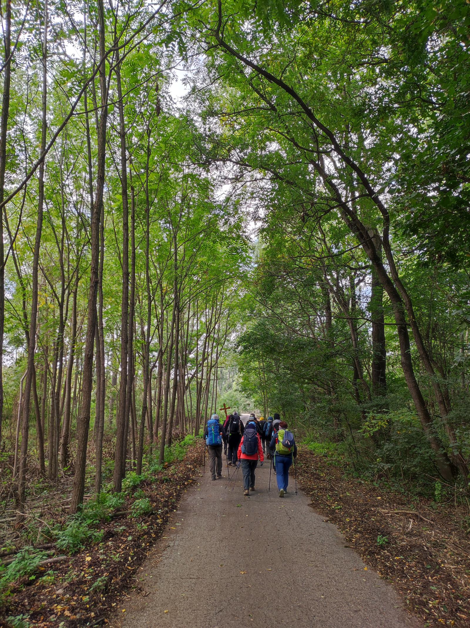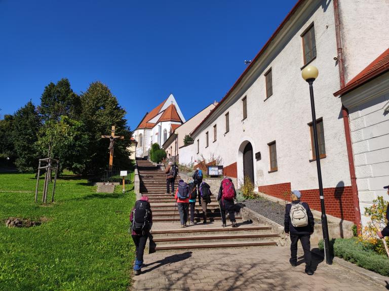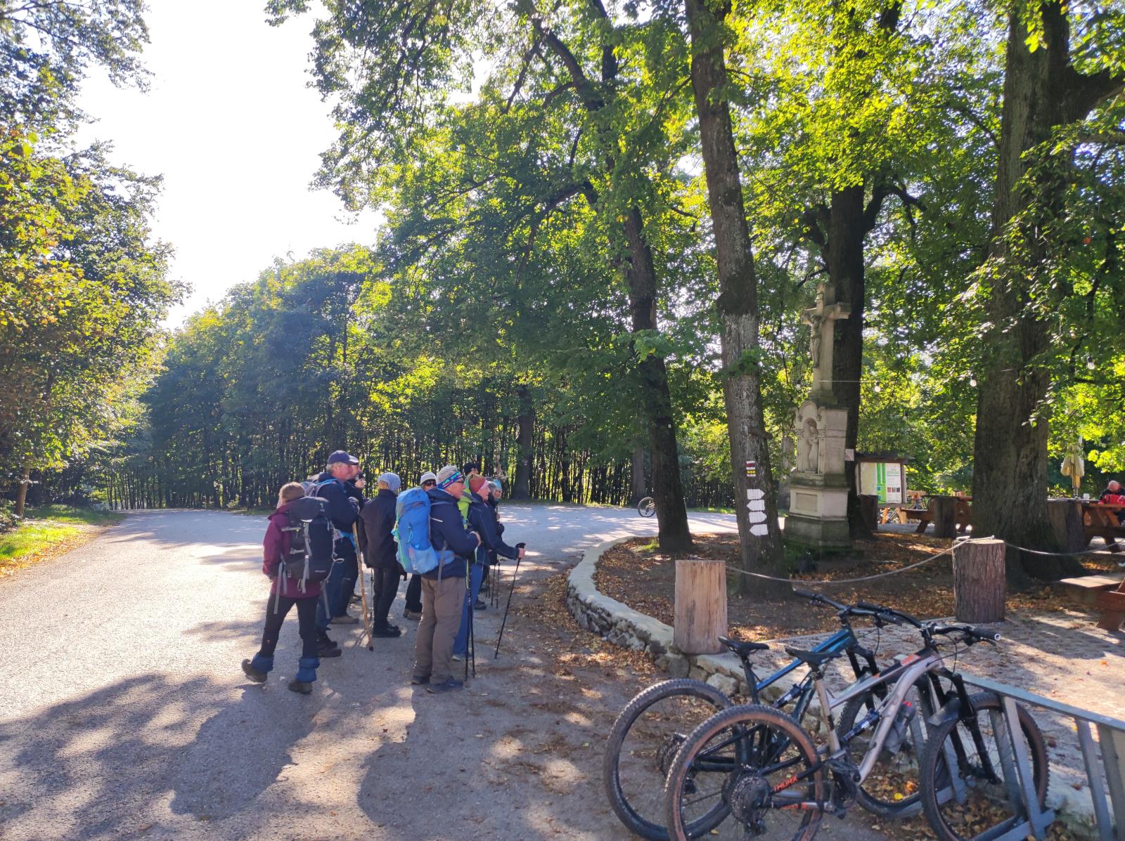 A szentgyörgyi szőlők között érkeztek meg a város elején található Szűz Mária kegyhelyhez, melyhez a környező települések hívei évszázadok óta évente elzarándokolnak Nagyboldogasszony ünnepe körüli szombaton. Szentgyörgy településen megebédeztek és megcsodálták a csodás központot. A felhőmentes ég alatt bebújtak a Kis-Kárpátok erdeibe.