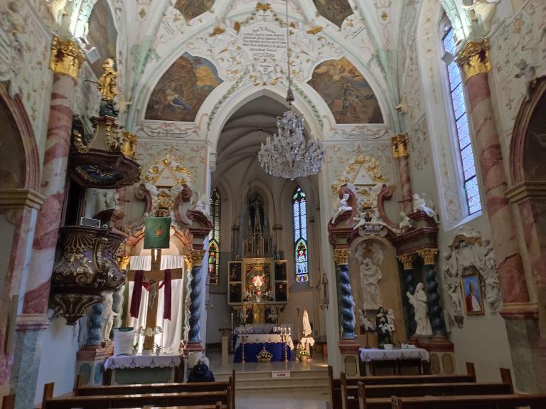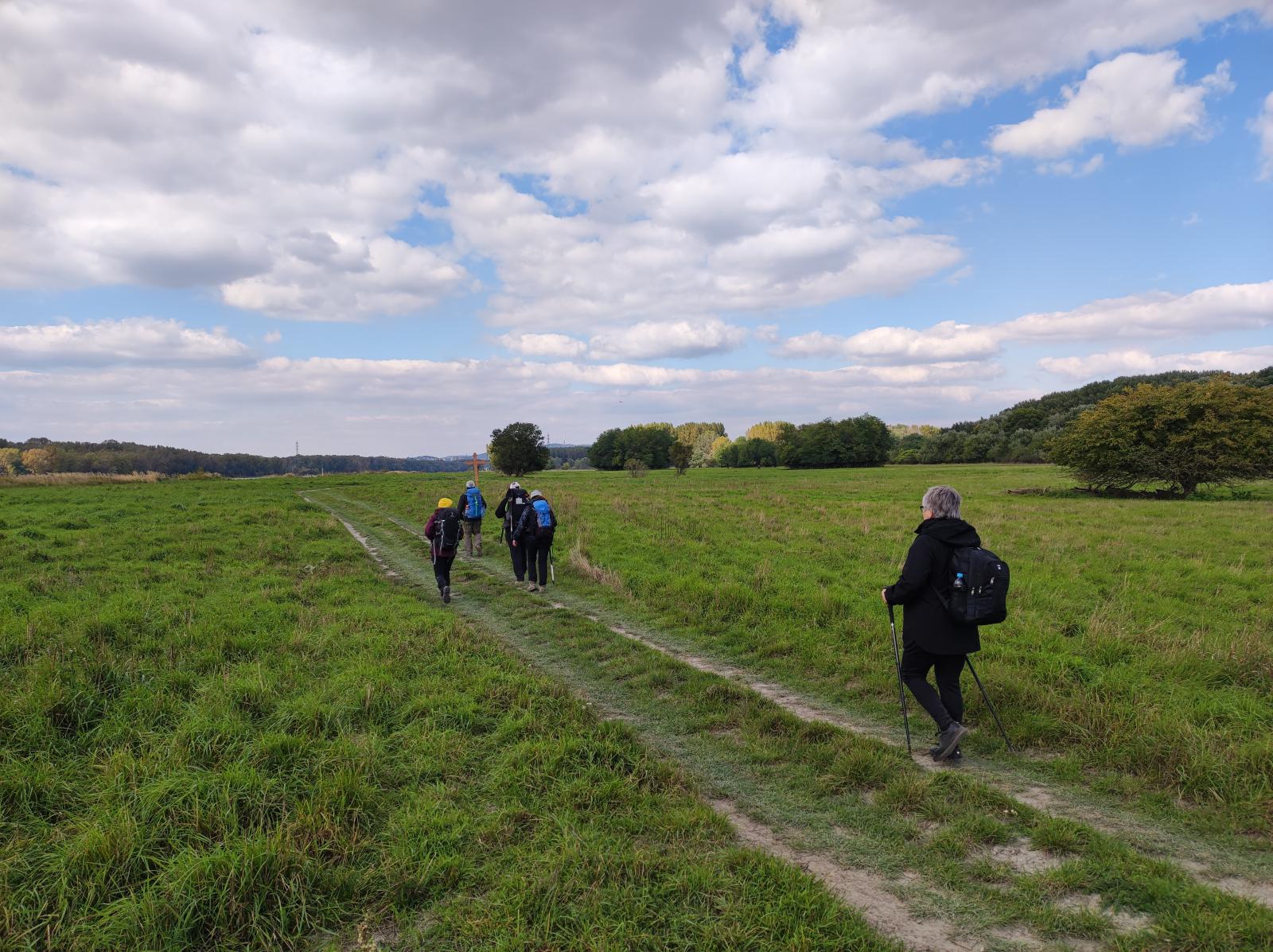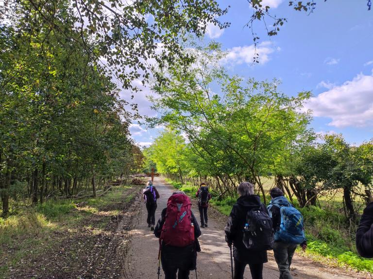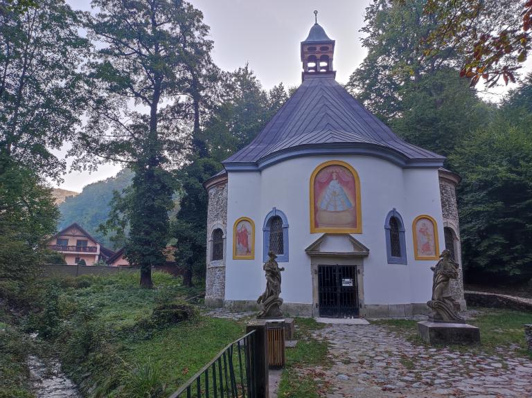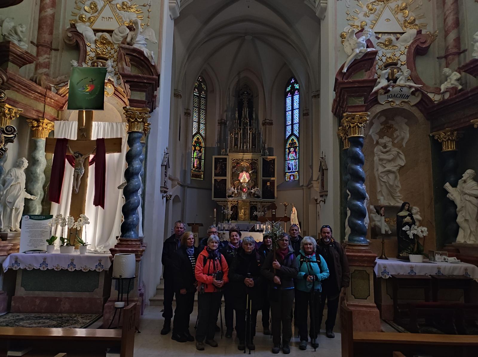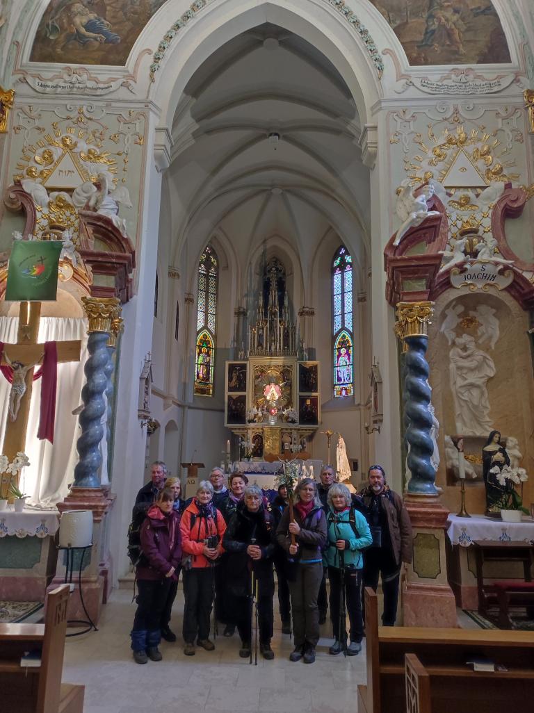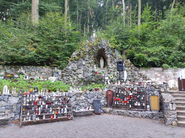 A szentgyörgyi szőlők között érkeztek meg a város elején található Szűz Mária kegyhelyhez, melyhez a környező települések hívei évszázadok óta évente elzarándokolnak Nagyboldogasszony ünnepe körüli szombaton. Szentgyörgy településen megebédeztek és megcsodálták a csodás központot. A felhőmentes ég alatt bebújtak a Kis-Kárpátok erdeibe.