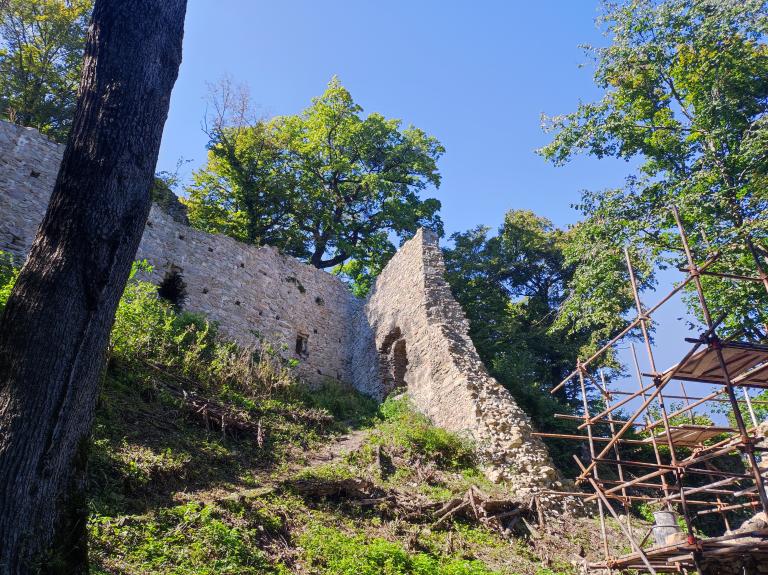 Szentgyörgyöt elhagyva megnézték a már tatarozás, helyreállítás alatt álló Fehérkő várának romjait. Aki tehette, közelebbről is megtekintette a vár állapotát.