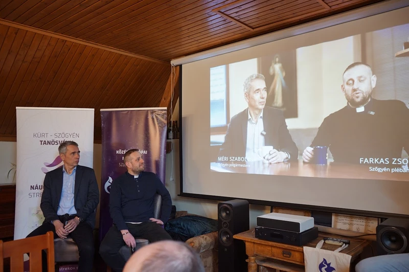 Farkas Zsolt atya és Méri Szabolcs, Szőgyén polgármestere a kerékpáros római zarándoklat részleteiről számolt be. Eredetileg Hodek Zoltán is kerékpárra ült volna, ám mivel az indulás idejére a nagy csapatból már csak ketten maradtak, végül segítőként, gépkocsival csatlakozott hozzájuk.