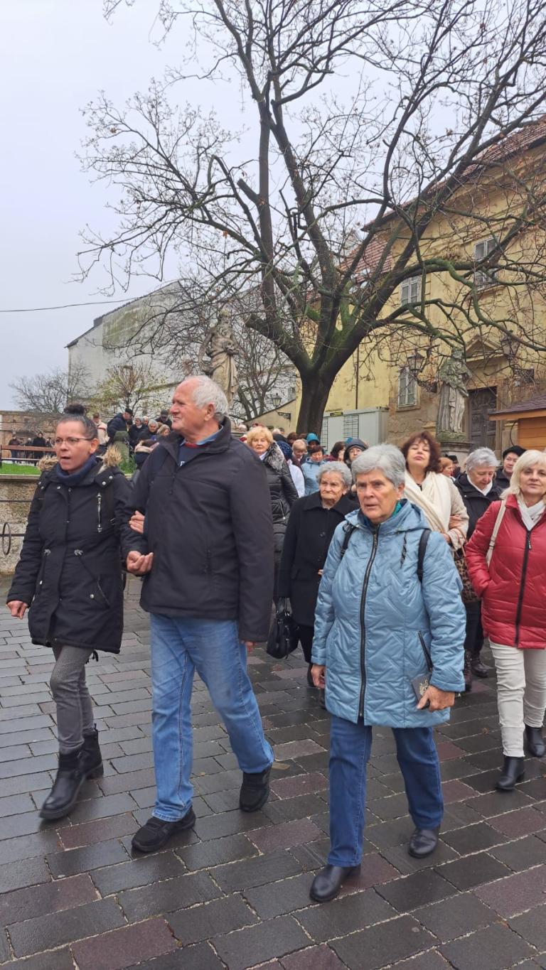 Az út során a közösen elimádkozták az örvendetes rózsafüzért a szerencsés útért és szép Mária énekeket énekeltek.