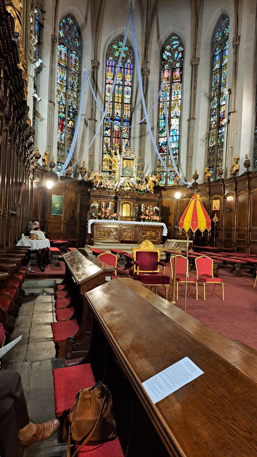 A vezető az út során bemutatta a templomot és a kegykép történetét. A Szent Miklós tiszteletére szentelt templom építése Nagy Lajos nevéhez fűződik. Később ez volt az esztergomi érsekek székesegyháza. 1380-ban kezdték építeni a XI. században épült templom alapjaira és 1430-ban fejezték be. Itt találhatók a legrégibb harangok 1569 és 1583-ból.