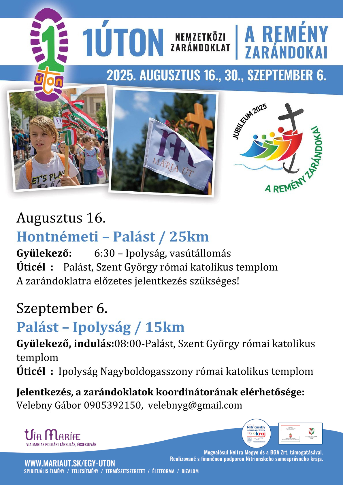 Jelentkezés, a zarándoklatok koordinátorának elérhetősége: Velebny Gábor 0905 392 150, velebnyg@gmail.com