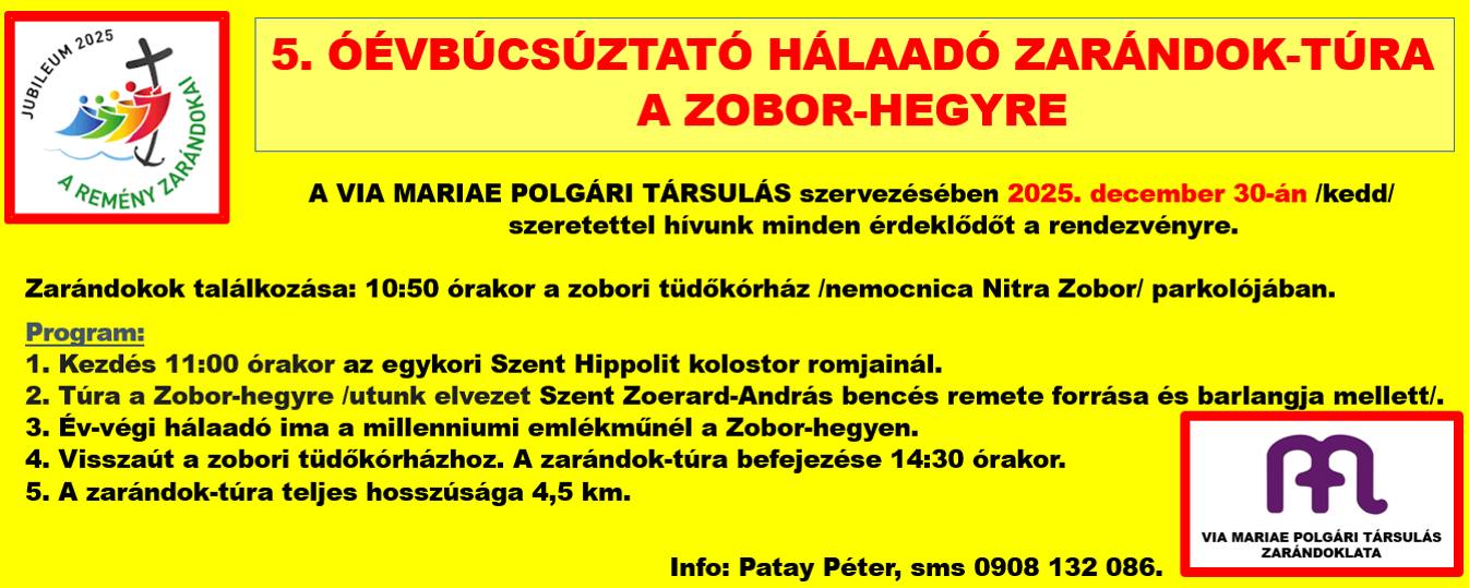 A Via Mariae polgári társulás szervezésében 2025. december 30-án (kedd) szeretettel hívunk minden érdeklődőt a rendezvényre.