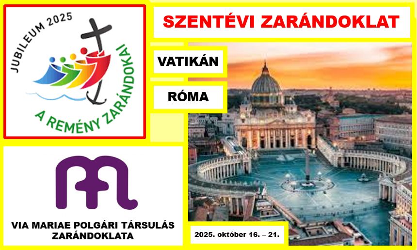 1. nap: 2025. 10. 16., csütörtök - a zarándoklat kezdetén Vámosszabadiban szentmise, majd utazás Rómába.