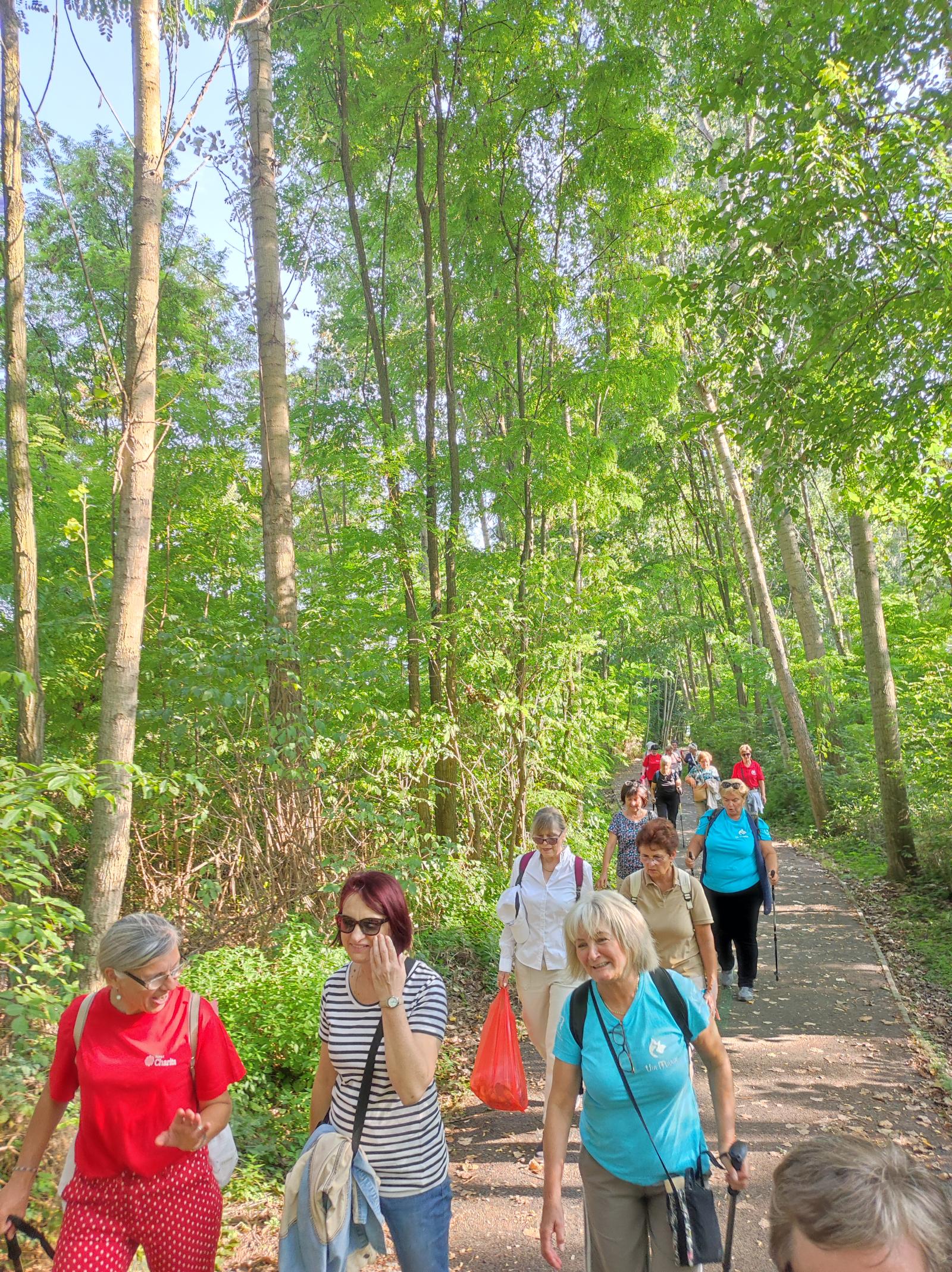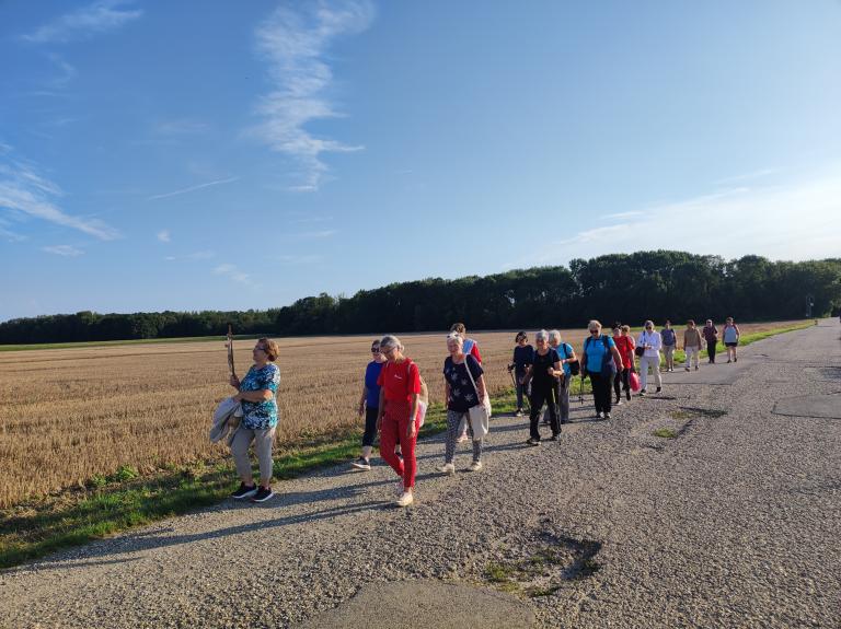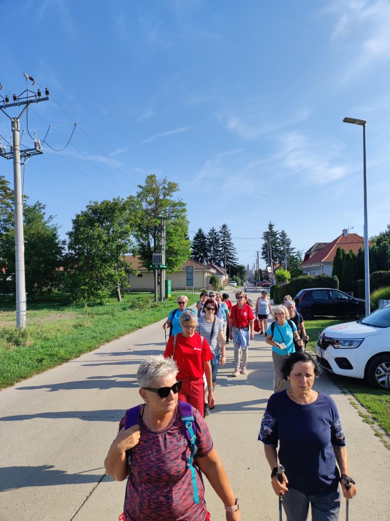 Mária énekkel indultak el a templomtól. Az 5 km-es út nagyrészt kerékpárúton, majd betonúton és földúton vezetett. Az út során elimádkozták a fájdalmas rózsafüzért, melynek minden tizedét más-más zarándok imádkozta elő, felajánlva különböző szándékra. Az imát rövid csendszakasz követte, amikor is a zarándokok a lelkük csendjében Istenre figyelhettek és elmerülhettek az ő szeretetében.