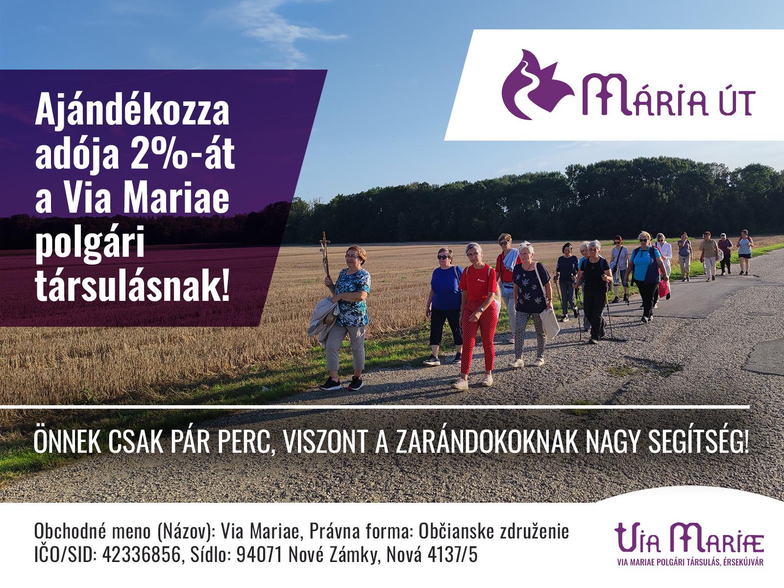 Ha szeretnétek támogatni a tevékenységünket, akkor lehetőségetek van, hogy az adótok 2%-át a Via Mariae (szlovákiai Mária Út) polgári társulásnak adományozzátok.