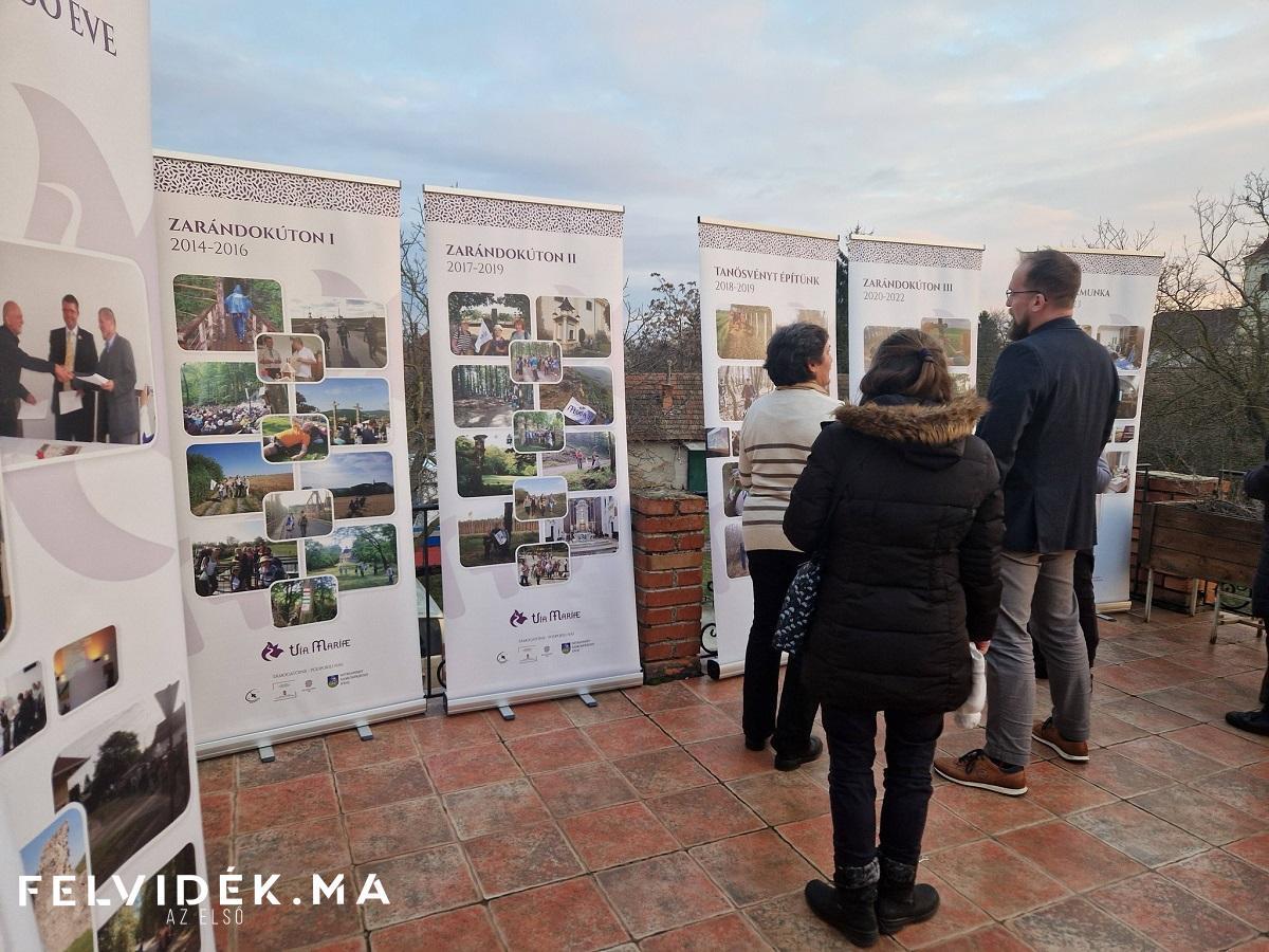 Gazdagon terített szeretetasztal várta a vendégeket, míg a borozó teraszán fényképes kiállítás mutatta be a Felvidéki Mária Út zarándoklatait a kezdetektől 2023-ig befejezően.