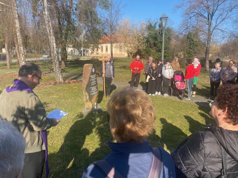 Március 7-én, a szombat reggeli szentmise után Esterházy János boldoggá avatásáért imádkoztunk a párkányi Sobieski-parkban levő emlékhelyénél.