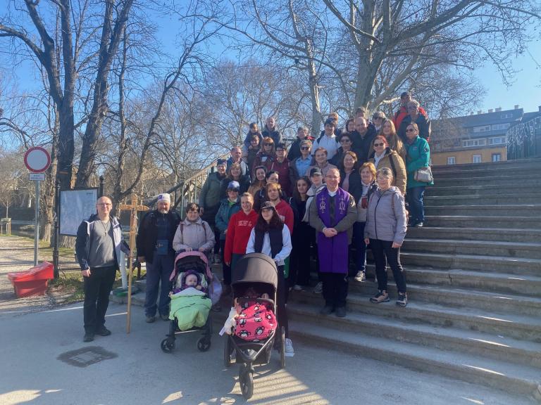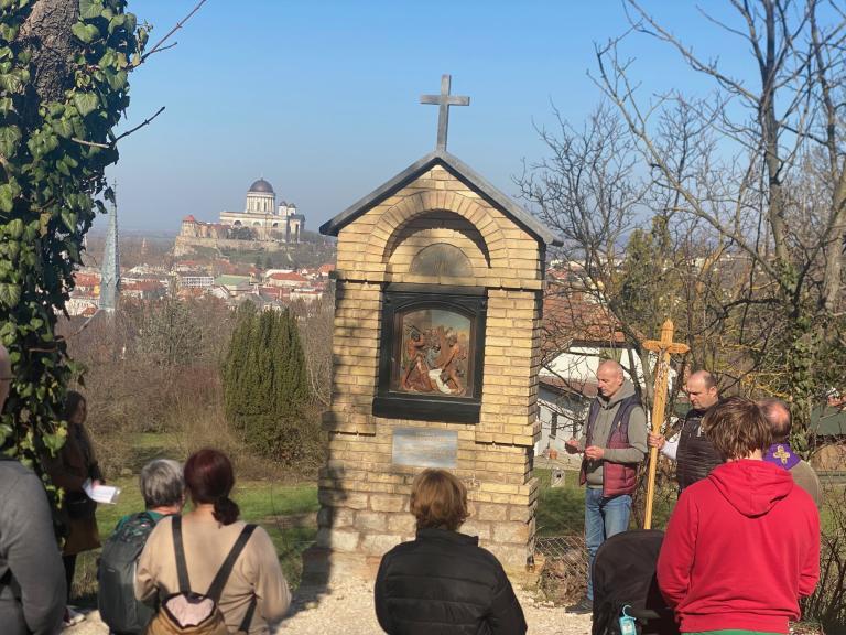 Nagyböjti Esterházy János családos gyalogos zarándokok az esztergomi belvárosi Kálvárián - Képes beszámoló