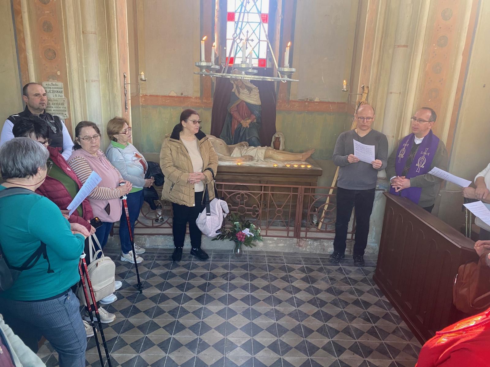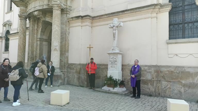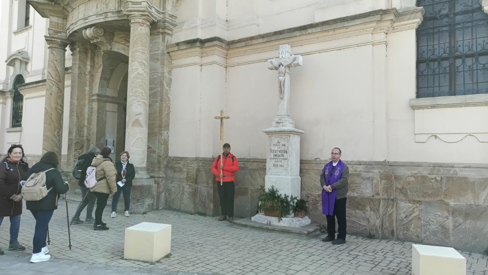 Útközben megálltunk a Belvárosi Péter-Pál templomnál, az ott levő keresztnél az ottani plébániai hívekért imádkoztunk (az "övék", ő hozzájuk tartozik a kálvária).