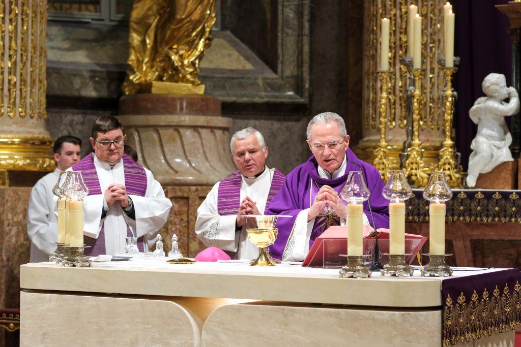 „A mai igeliturgia felkészít Jézus húsvéti misztériumára, ami már közel van, és a halál feletti győzelemről beszél. Arra szólít fel, hogy hatoljunk bele ebbe a titokba, a halál feletti győzelem biztos reményével. Itt, a Székesegyházban megemlékezünk arról, hogy 1697. március 17-én a Szűzanya képéről véres könnyek gördültek alá három órán keresztül. A Szűzanya könnyezett, mert szeret bennünket, siratja bűneinket, amelyekkel hűtlenek lettünk Szent Fiához, de a sírás egyben vigasztalás és bátorítás is. A Szűzanya ott állt a kereszt alatt, együtt szenvedett Szent Fiával, látta, hogy meghalt, de átélte a feltámadás csodáját is, s az Úr Jézus őt is felvette a mennyei dicsőségbe. Tehát a Szűzanya a feltámadásba vetett reményünk záloga, minden szenvedés, üldözés és bűn, halál ellenében” – hangsúlyozta Pápai Lajos püspök atya. A szentmise bemutatásán Ďurčo Zoltán atya is részt vett paptestvéreivel.